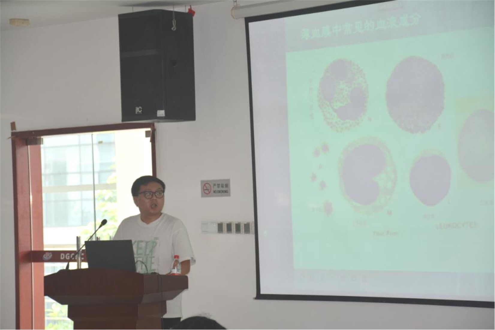图4 市疾控中心微检所冯楚航技师在培训班上授课