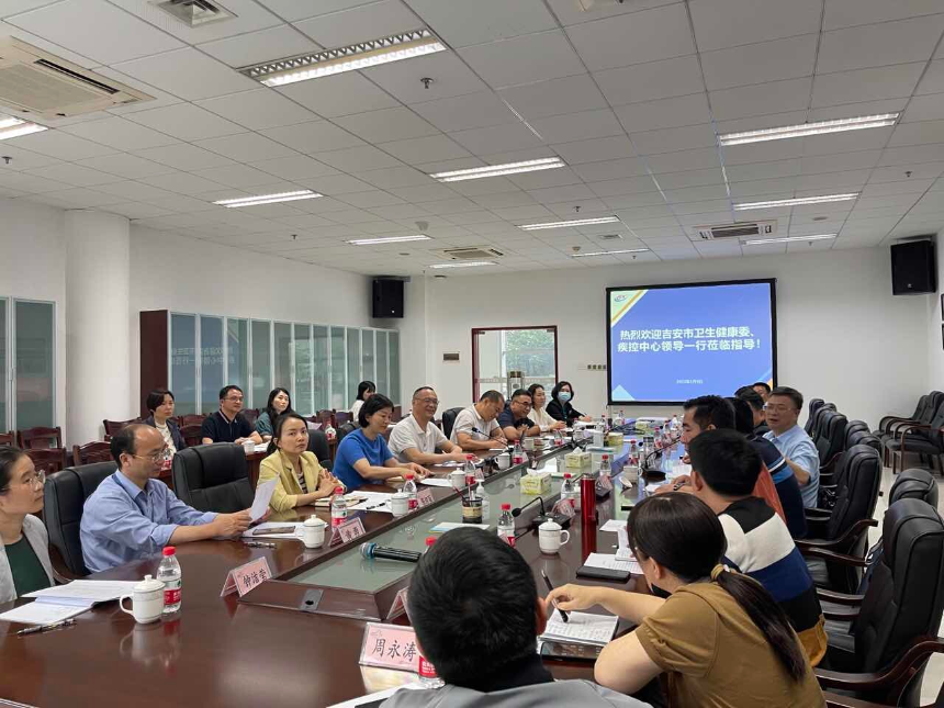 姚旭芳主任首先对兄弟单位的到来表示热烈欢迎。在座谈会开始前,姚旭芳主任带领吉安市卫健委、疾控中心一行实地参观了我中心实验室、应急仓库和现场教学班等场所,参观途中我中心相关部所负责人对实验室建设、设施设备和应急物资储备等情况进行了详细介绍。