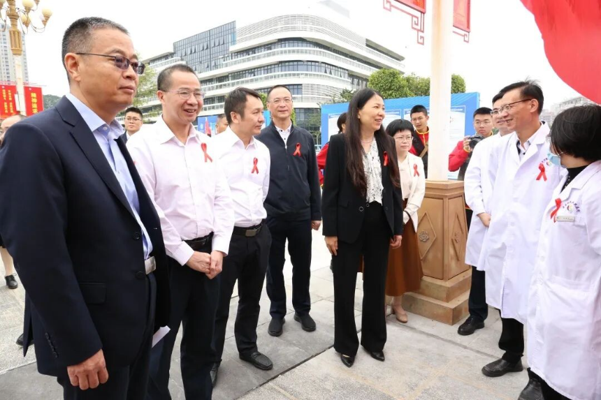 在活动启动仪式上,广东医科大学党委委员、副校长邝卫红,松山湖社会事务局副局长林润仪和市卫生健康局局长张巧利作活动致辞,张巧利局长提出四点“抗艾防艾”倡议,一是各镇街(园区)政府、各部门提高认识,认真履行工作职责,加大对社会力量参与艾滋病防治工作的支持力度;二是各普通高等学校、职业院校的管理者、老师做好青年学生健康的领航者和守护者,青年学生争做防艾知识的传播者、防艾活动志愿者;三是广大市民践行自身健康的第一责任人,增强个人健康意识,提高防艾知识水平,践行健康生活方式;四是全市工会、共青团、妇联、红十字会等群团组织发挥工作网络优势开展艾滋病防治宣教,社会组织发挥自身优势积极参与艾滋病防治工作,合力提升防治成效。