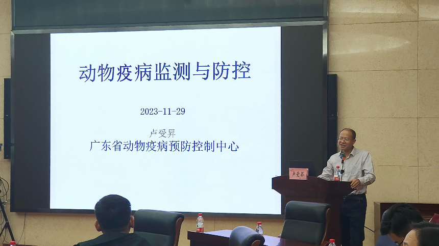 图1 广东省动物疫病预防控制中心副主任卢受昇授课