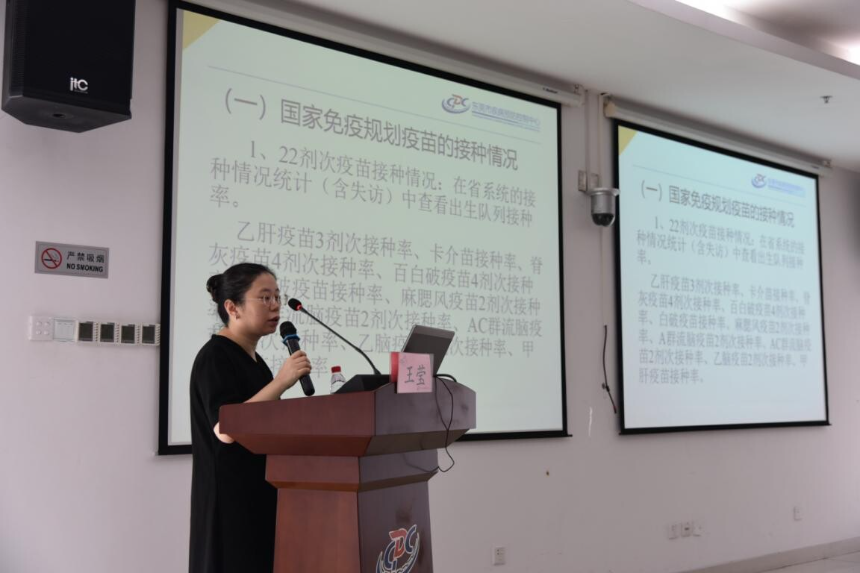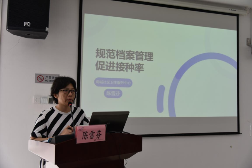 我中心副主任谢伟光对我市在省接种情况排名和现况进行了总结,并对各镇街(园区)接下来的工作提出意见。免规所二级主任科员王东对国家免疫规划疫苗接种率监测方案(试行)进行了解读,三级主任科员王莹对我市疫苗接种率现况进行了分析,三级主任科员刘思渊对接种档案数据质控管理进行了讲解。培训班还邀请了道滘镇社卫中心公共卫生组副职负责人肖巧生和南城社卫中心业务骨干陈雪芬对本镇街接种率监测和档案管理方面的经验进行了分享。最后免规所所长陈绍丽总结了全市的整体情况,强调了之后的工作要求。