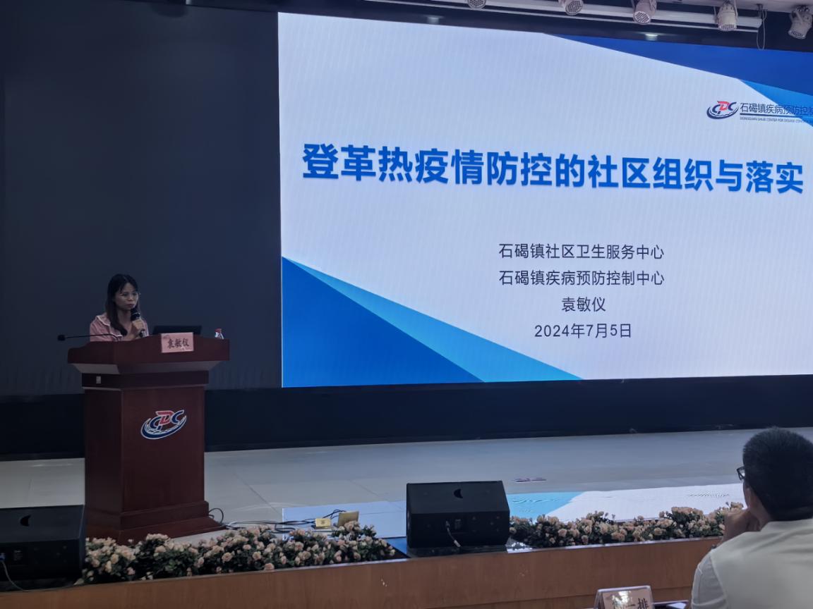 培训班上,市爱卫办主任温玉麟强调爱国卫生运动是党把群众路线运用于卫生防病工作的成功实践,我们要充分认识到登革热疫情防控形势的严峻性,掌握科学的传播媒介防制技术,通过爱国卫生运动把防蚊灭蚊、清除孳生地工作落到实处。接着,石碣镇社区卫生服务中心袁敏仪副主任医师分享了石碣镇在登革热疫情防控工作中如何做好社区组织和落实;随后,我中心消杀所所长黄振宇从疫情形势、伊蚊密度监测、登革热防控的关键环节、伊蚊成蚊控制技术要点和科学用药等方面详细地讲解了登革热传播媒介的监测与控制技术要领。