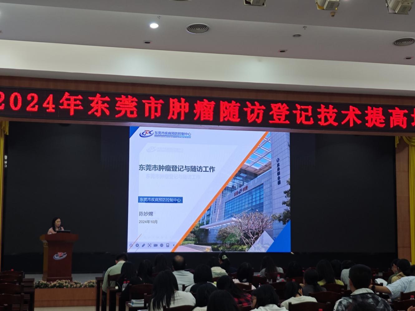 为规范和提高我市肿瘤随访登记报告质量,2024年东莞市肿瘤随访登记技术提高培训班于2024年10月25日在市疾病预防控制中心举行。本次培训班邀请了各市属医院、镇街医院,综合性民营医院以及各社区卫生服务中心的分管领导、相关科室负责人和肿瘤报告管理技术骨干参会。当日约150人参加了本次培训班。