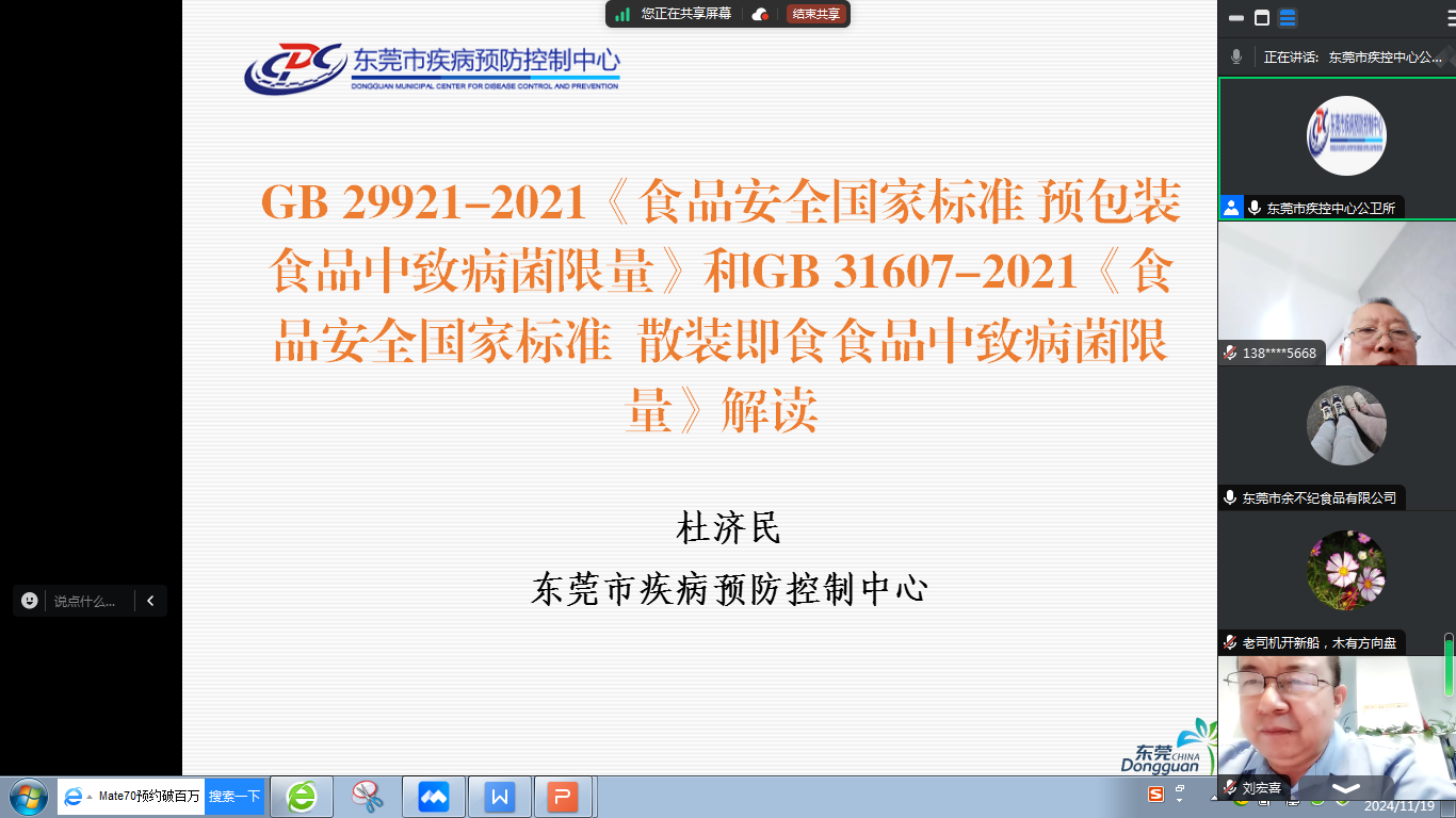 为做好我市食品安全标准宣贯工作,提升食品生产企业的食品安全标准理解和应用能力,我中心于11月19日举办了“2024年东莞市食品安全标准宣贯网络培训班”,来自全市500余家脂肪、油和乳化脂肪制品类、冷冻饮品类、饮料类、调味品类、速冻面米与调制食品类、即食鲜切果蔬加工类等食品生产企业技术人员共200余人参加了本次网络培训。