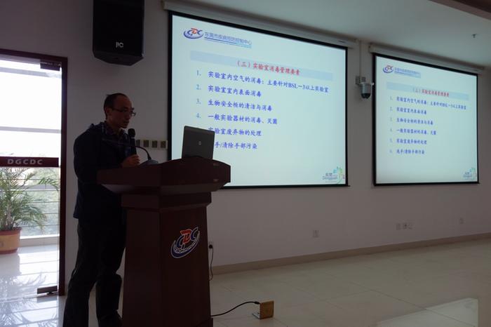 本次宣贯由我中心质量负责人张莉萍、检验所副所长黄勇和质量控制管理部康美香进行授课,分别对《2015年管理体系修改情况汇总》、《实验室生物安全知识培训》和作业指导书DGCDPC/C/H001《日常质量监督工作规范》进行了专题讲解。