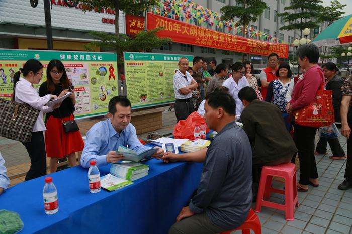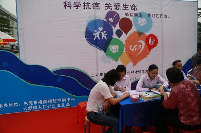 2016年4月15~21日是第22届“全国肿瘤宣传周”,今年宣传主题为“科学抗癌,关爱生命”,副主题为“癌症防治,我们在行动”。为了更好地普及大众对肿瘤防治知识的认识,引导群众主动、科学抗癌,4月16日上午,由市卫生计生局牵头,市疾病预防控制中心、大朗镇人口计生卫生局、大朗镇社区卫生服务中心、大朗镇志愿者服务中心等多个单位部门联合在大朗镇松柏朗广场开展“全国肿瘤防治宣传周”宣传活动。