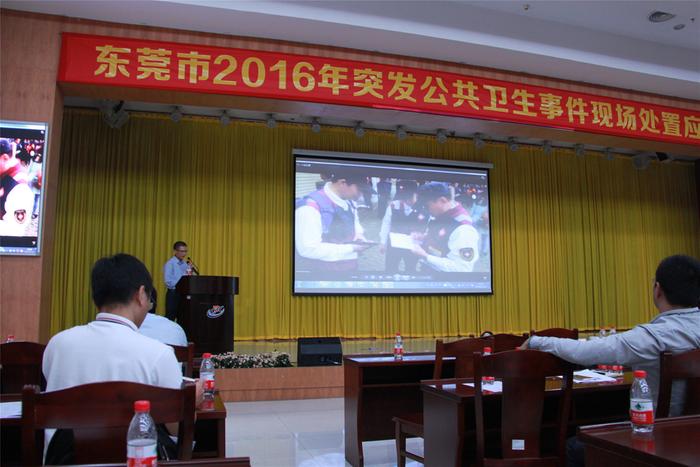 为进一步提升我市疾病预防控制专业技术人员突发公共卫生事件的现场调查处置及信息收集挖掘能力,规范相关操作和处置流程,2016年11月21日我市举办了“东莞市2016年突发公共卫生事件现场处置应急演练”。本次演练由市卫生计生局主办,市预防医学会、市疾控中心承办,省疾控中心组织策划。演练的主演单位是市疾控中心,观摩单位包括各镇街(园区)卫生行政管理部门,各镇街(园区)疾控中心,市属医疗机构、各镇街(园区)医院、综合性民营医院。