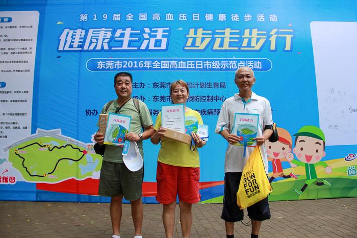 本次活动在起始点及三个中继站发放高血压防治知识宣传手册,同时安排医务队伍免费为现场群众提供测量血压、诊查、咨询,并且,为了让群众更好地了解一些健康管理知识,在第一中继站设立问答环节。最后,参加完本次徒步活动的群众获得完赛证书及纪念品一份。