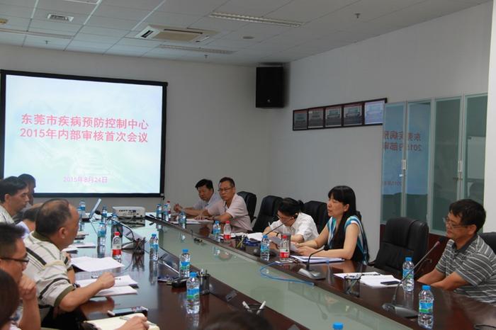 图1. 东莞市疾控中心主任张巧利在内审首次会议上作指导讲话