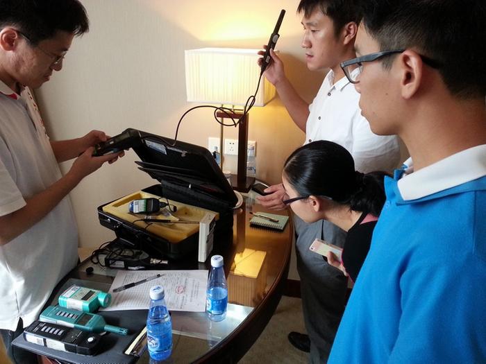 工作人员进行公共场所微小气候监测