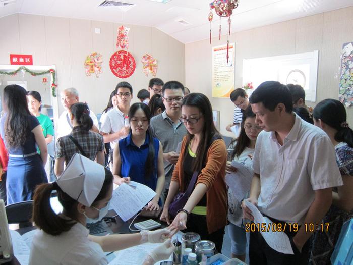 图4:市疾控中心献血职工在广州血液中心献血现场