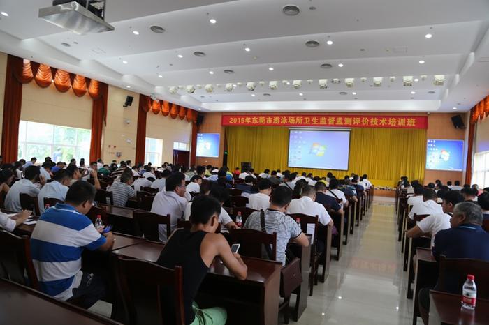游泳场所已经成为市民娱乐、消暑、休闲、健身的主要场所。近年来,随着游泳场所数量增多、规模扩大、经营方式变化,气温升高,游泳人数也相应大幅增加。与此同时,因游泳引起的疾病也屡屡见于报端,其原因多是由于泳池水未能有效处理造成的。因此,为提升我市基层卫生监督监测人员的监督监测评价技术水平,提高游泳场所经营单位卫生管理人员的法律意识和卫生知识水平,经市卫生计生局同意,市疾病预防控制中心、市卫生监督所于2015年8月20日于东莞市疾控中心二楼会堂联合举办了2015年游泳场所卫生监督监测管理技术培训班。本次培训班在市内是首次举办,填补了市内相关培训空白。