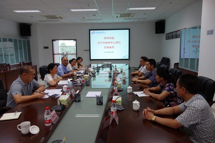 8月19日,兴宁市疾控中心主任温万敏一行5人来到我中心交流学习质量管理工作。中心副主任李月欢以及办公室、质管部、理化所、微检所有关负责同志参加了座谈交流。