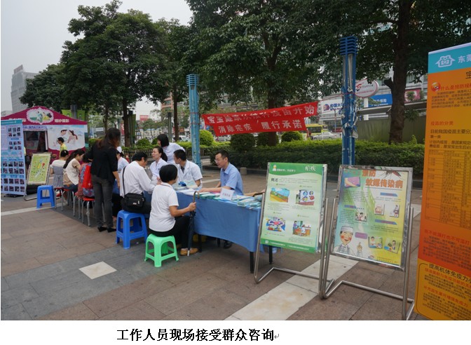 本次宣传活动现场气氛十分活跃,工作人员通过设立咨询台,解答群众提出的疑难问题。我中心防疫科2位专业技术人员参与了本次宣传活动,在现场接受群众咨询,解答群众提出的疑难问题,讲解预防疟疾相关知识。东莞南城电视台对本次活动进行了报道,使这次活动开展的有声有色,做到了家喻户晓,人人明白,为消除疟疾宣传活动营造了良好的氛围。