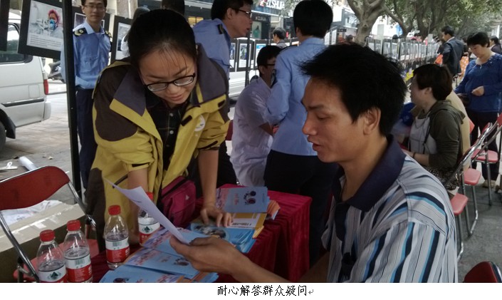 2013年4月28日,东莞市疾病预防控制中心职业卫生监测科4名专业技术人员来到寮步镇东方商业街,参加由东莞市卫生局主办的“防治职业病,幸福千万家”职业病宣传活动。本次活动中,我中心展示了日常工作记录的有关职业卫生照片。50多张照片涵盖了职业卫生基本知识、常见职业病工种、职业卫生防护等多个方面,以图文并茂的形式展现了作业工人的生产状况,生动而详实的内容吸引了众多务工者驻足观看。同时,中心专业技术人员积极派发宣传资料、青年文明号服务卡,并耐心解答群众有关生产工作中的职业卫生疑问,向他们展示了专业的防护用品和正确的佩戴方法,并举行有奖问答,现场气氛热烈,社会效益良好。