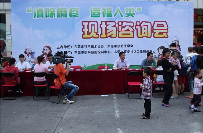 2011年10月14日下午,我市在寮步社区卫生服务中心和寮步镇新安超级广场分别举办了主题为“消除麻疹 造福人类”的创新论坛和现场咨询会。此次创新论坛及现场咨询会由市科学技术协会、市科学技术局和市预防医学会主办,市疾病预防控制中心、寮步镇社区卫生服务中心、市科学馆和市科协学会部协办,寮步镇电视台对本次活动进行了详细的报道。