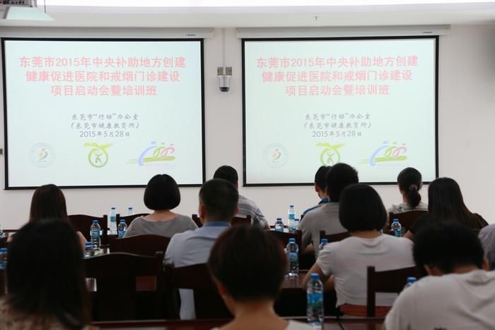 图1:东莞市2015年中央补助地方创建健康促进医院和戒烟门诊建设项目启动会暨培训班现场