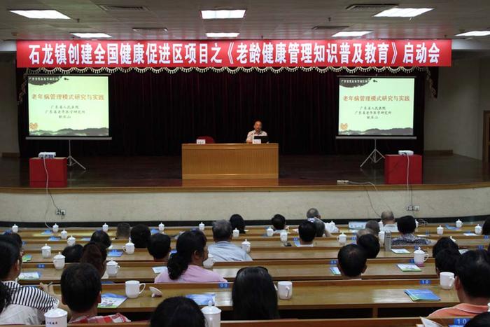 2015年6月17日下午,石龙镇人民政府在镇政府会堂举行了石龙镇创建全国健康促进区项目之老龄健康管理知识普及教育启动会,石龙镇各社区(村)、机关、企事业单位长者及市民约350人参加了此次活动。