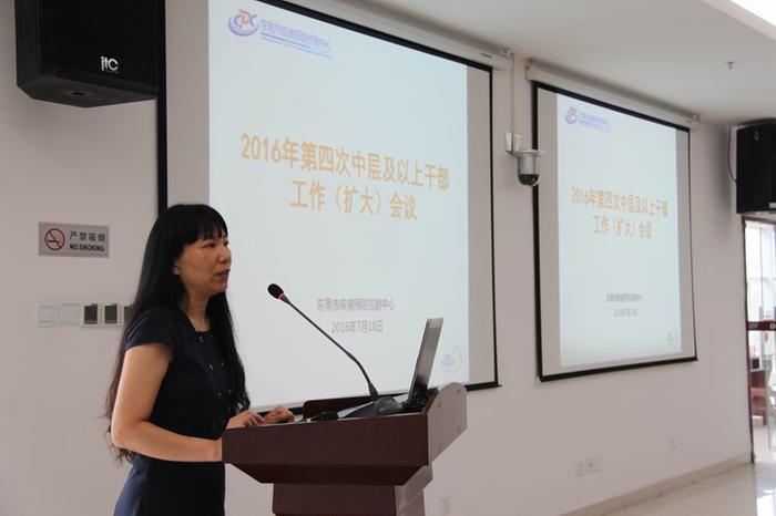 第二阶段为由市疾控中心领导和各部所主要负责人参加的2016年第四次中层及以上干部工作会议。会议仍由市疾控中心主任张巧利主持。首先由办公室副主任谢伟光通报了中层干部会议议定事项的落实情况和“东莞疾控”微信公众号的运营情况;然后由财务部主任向淑蓉对中心财务的相关问题进行了相应的解读;会议最后,中心主任张巧利对下半年“东莞疾控”微信公众号的运营和财务工作提出了若干具体要求。