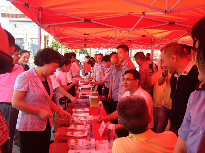 为贯彻落实国务院食品安全委员会办公室等十八部门《关于开展2015年全国食品安全宣传周活动的通知》的精神,按照市食安委的部署,市疾控中心启动了以“尚德守法,全面提升食品安全法治化水平”为主题的食品安全宣传周活动。2015年6月16日,我中心派出4名专业技术人员参加在东城万达广场举行的“2015年东莞市食品安全宣传周活动”的启动仪式,喻丽君副市长、市卫生计生局罗小勇副局长亲临现场指导工作。