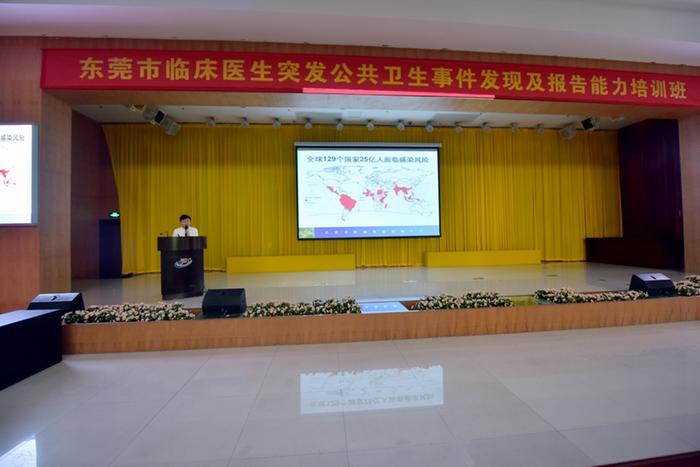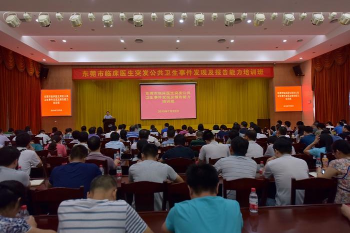 为进一步提高我市临床医生对传染病和突发公共卫生事件的早期发现能力,强化报告意识,及时、科学、规范处置突发公共卫生事件,减少突发公共卫生事件对公众健康和社会生活的影响,受市卫生计生局委托,市疾控中心在7月22日举办了“东莞市临床医生突发公共卫生事件发现及报告能力培训班”。各市属医院、镇街医院,综合性民营医院医务科、急诊科、内科、皮肤科、防保科技术骨干以及各社区卫生服务中心从事医疗、预防保健工作技术骨干共300余人参加了培训。