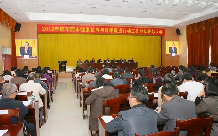 2012年12月28日下午,市“行动”领导小组在市疾病预防控制中心会堂召开2012年度东莞市健康教育与健康促进行动工作总结表彰大会。全市各镇(街)政府(办事处)“行动”领导小组组长及其办公室主任、医院分管院长、“行动”办公室资料员或医院健康教育资料员、市属各医院及各镇(街)社区卫生服务中心健康教育负责人或资料员、2012年创建成东莞市“行动”示范单位的社区(企业、学校、医院/社卫)负责人、被评为2011-2012年度东莞市健康教育及健康促进行动工作先进个人以及市“行动”领导小组各成员单位负责人和联络员约300人参加了会议。