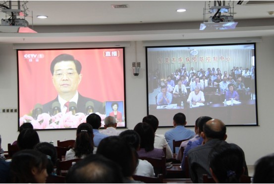 11月8日上午9时,中国共产党第十八次全国代表大会在北京人民大会堂隆重召开!市疾控中心组织了中层以上领导、干部和全体党员集中收看了十八大开幕会,认真听取了胡锦涛同志的十八大报告。