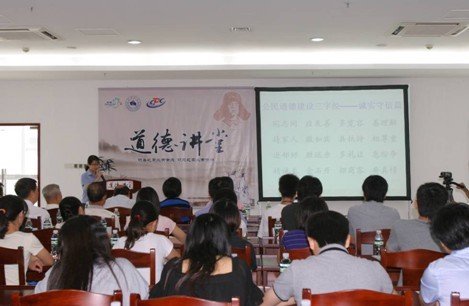 讲堂上,大家学唱了志愿者之歌《爱就在身边》,观看了2011年度感动中国人物吴孟超同志的先进事迹,一起诵读了《公民道德三字经》,聆听了中心退休党支部书记刘灿禧同志讲述的爱岗敬业史。通过道德讲堂的熏陶,青年团员们获益良多,纷纷表示要以吴孟超等老同志为榜样,做到勤于学、善于思、敏于行,为公共卫生事业的发展不断努力。退休的老同志们也表示要树立高尚的道德观,做一名遵纪守法、团结互助的好公民。最后,中心副主任张巧利同志作总结发言,勉励青年同志要向退休老同志学习,勤学重道,不断提高个人素质,在各自的岗位上更好地为群众服务,共同为疾控事业发展而奋斗。