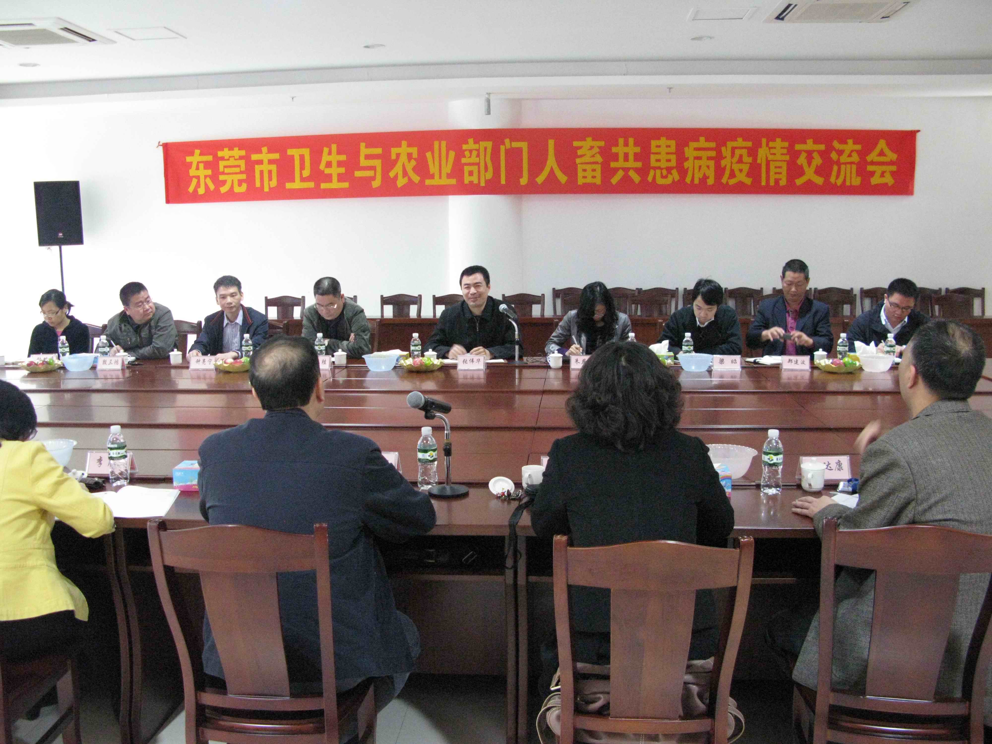 为了做好我市基孔肯雅热、狂犬病、禽流感等人畜共患病的预防控制工作,健全多部门合作机制,根据《东莞市卫生与农业部门人畜共患病疫情通报实施方案(实行)》(东卫〔2008〕199号)精神,市卫生局与农业局于3月30日在我中心召开 “东莞市卫生与农业部人畜共患病疫情交流会”。此次会议由市卫生局肖文忠科长主持,市卫生及农业部门有关领导及专业技术人员共20人参加了会议。