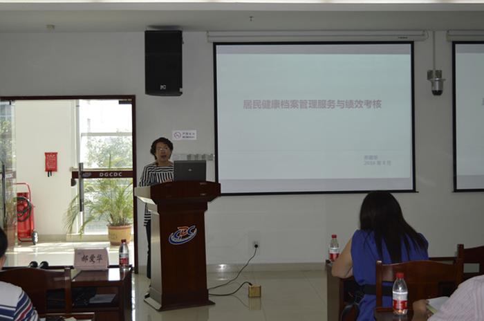 图1 郝爱华主任为大家讲解《居民健康档案管理服务与绩效考核》