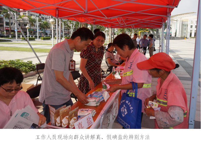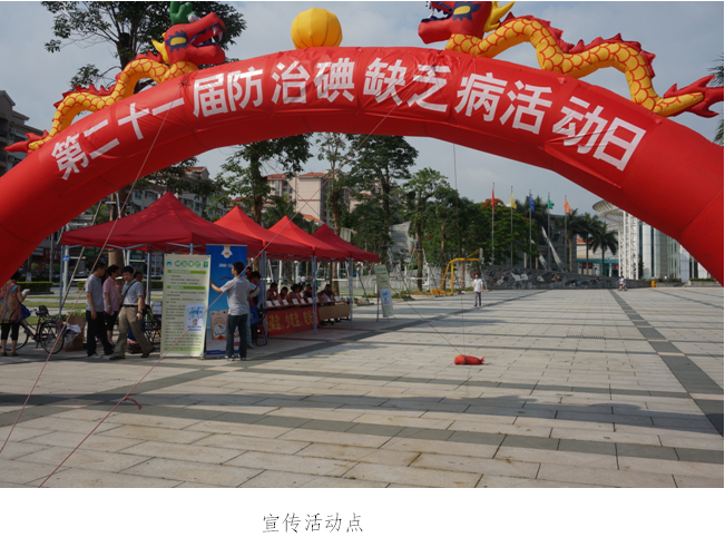 为了普及碘缺乏病防治知识,进一步增强群众对碘缺乏病防治知识的认识,5月15日上午,由市卫生和计划生育局牵头,市发改委、市教育局、市残联、市关工委、市盐务局等多个部门联合在东城文化广场举行东莞市“防治碘缺乏病日”宣传活动。活动现场通过张贴宣传画、悬挂横幅、发放宣传单和小册子、专家咨询等形式,就碘缺乏造成的危害、预防碘缺乏病、真假碘盐辨别、食用碘盐的注意要点等方面进行了宣传。省疾控中心基层卫生和地方病控制所副所长钟文莅临活动现场,并接受了媒体采访。本次宣传活动各部门共出动了30余人,悬挂横幅2条,制作宣传版面6块,共接待群众200余人,发宣传资料500多份。我中心派出了专业技术人员参与了本次宣传活动,并在现场接受群众咨询,解答群众提出的疑难问题,向群众讲解了碘缺乏病的相关知识。