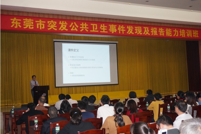 为提高我市医务人员对传染病、食物中毒、职业中毒、疑似预防接种异常反应等突发公共卫生事件的发现报告意识,对突发公共卫生事件切实做到“早发现、早报告”,从而为突发公共卫生事件的“早处理”和“早控制”奠定基础,减少突发公共卫生事件对公众健康和社会秩序的影响。我中心在3月20日举办了“东莞市突发公共卫生事件发现及报告能力培训班”,全市各镇街医院、社区卫生服务中心、市属医院和部分民营医院的专业技术骨干等约260人参加了本次培训班。