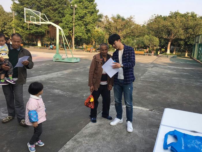 图1.活动现场工作人员派发生活饮用水宣传单并与居民进行游戏互动