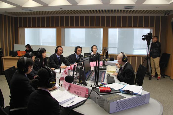 11月26日上午,东莞市疾控中心由中心主任张巧利率队,携中心副主任姚旭芳、艾滋病防制所所长朱建琼、公共卫生监测所所长赵建军、传染病预防控制所副所长张泽武、免疫规划所副所长陈绍丽和慢性非传染性疾病预防控制所副所长钟逸菲一行7人来到了东莞市广播电视台直播室参加“阳光热线”电台直播。
