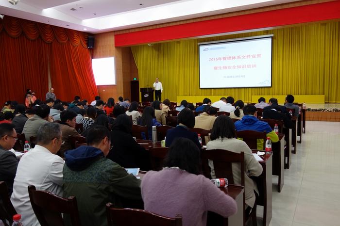 2016年12月15日下午,我中心举办了2016年管理体系文件宣贯暨生物安全知识培训班,本次培训旨在全面贯彻执行新版体系文件,确保质量管理体系的有效运行和持续,加强中心工作人员生物安全意识。中心全体工作人员与保洁人员共180多人参加了培训。
