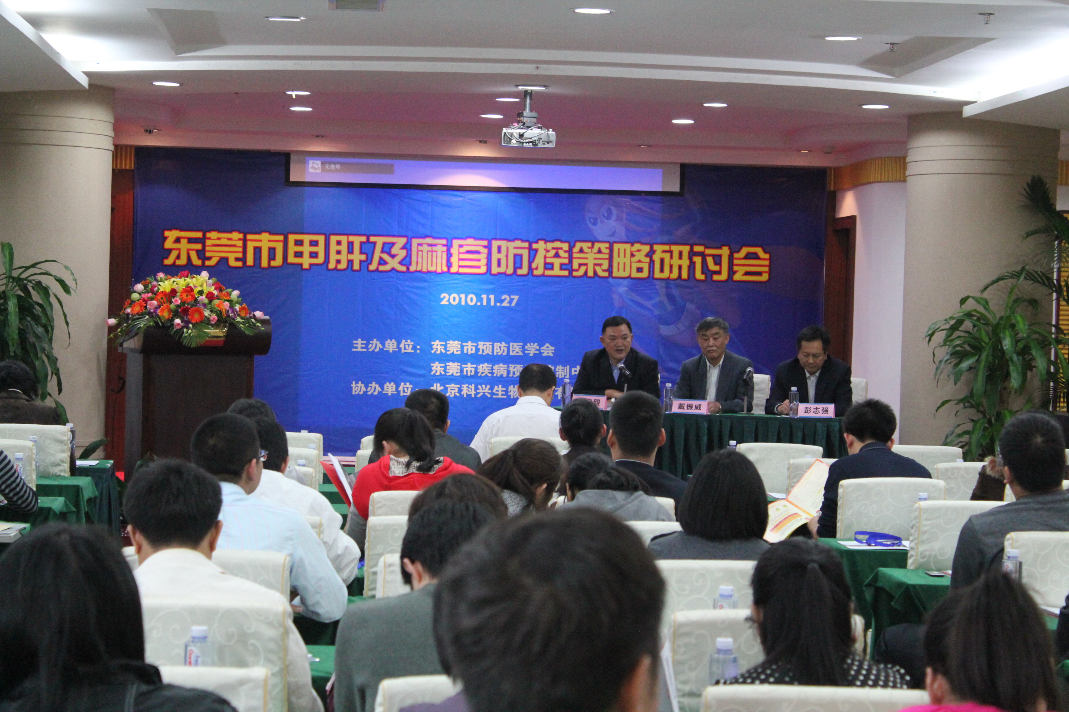 为加强甲肝和麻疹的防控,分析、探讨甲肝和麻疹防控策略,2010年11月27日市预防医学会和市疾病预防控制中心在尼罗河酒店联合举办了东莞市甲肝及麻疹防控策略研讨会。