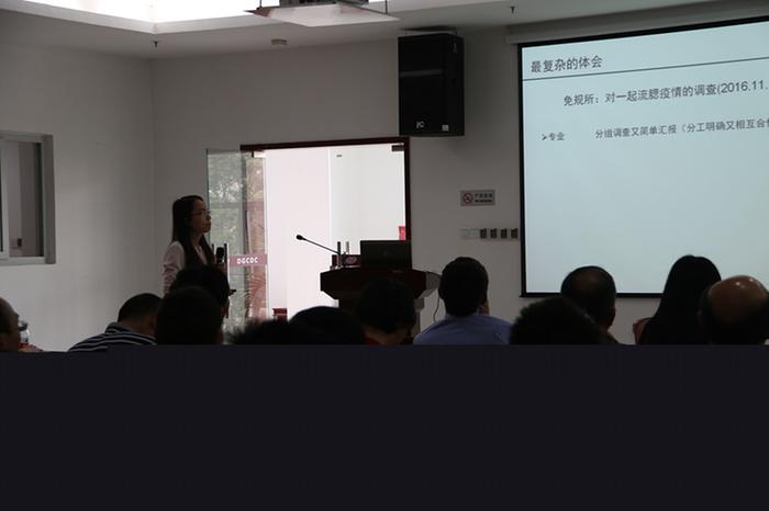 报告会开始,马立明副主任代表中心党政领导班子和中心全体职工对2016年新录用的8名公务员圆满完成轮岗培训表示祝贺,并逐一向全体参会人员介绍8名新人的基本情况。接着,8名新人逐一上台以PPT的形式汇报轮岗期间的收获、感想、对未来的展望以及对中心的意见和建议。