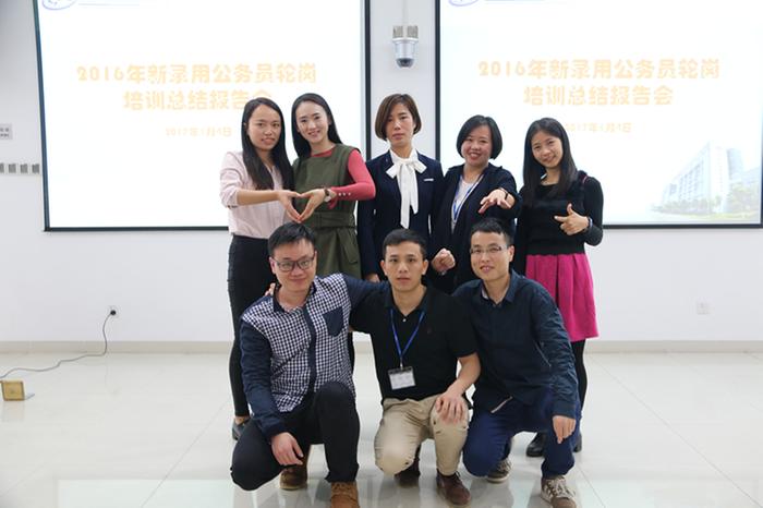 经过4个月的轮岗培训,我中心2016年新录用的8名公务员熟悉了中心各部所的职责及业务。为总结交流新录用公务员轮岗培训工作的成果和经验,展示新录用公务员的综合素质及精神风貌,1月4日下午我中心举办了2016年新录用公务员轮岗培训总结报告会。中心领导班子、各部所副科级以上干部、各部所职工代表和8名新录用公务员参加了报告会。
