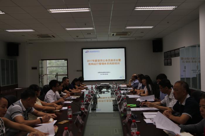 为了使新录用公务员尽快熟悉新的工作环境,顺利实现新的角色转变,9月4日上午我中心召开了2017年新录用公务员座谈会暨机构运行管理体系岗前培训。中心领导班子、各部所主要负责人和4名新录用公务员参加了会议,会议由中心党委书记、中心主任张巧利主持。