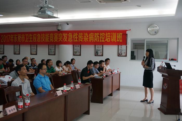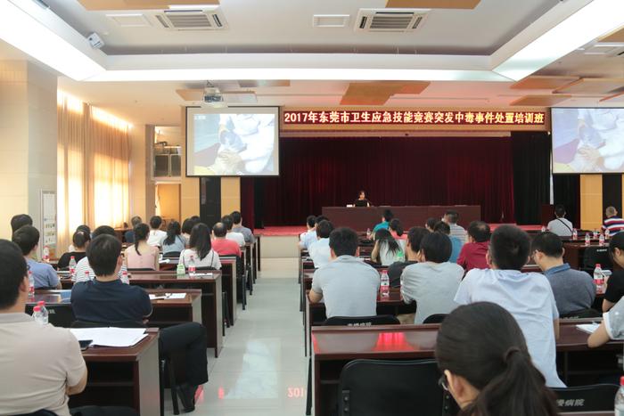 根据东莞市卫生计生局、东莞市总工会《关于开展2017年东莞市卫生应急技能竞赛活动的通知》(东卫函〔2017〕188号)的要求,并受市卫生计生局委托,市预防医学会于7月21日举办了“2017年东莞市卫生应急技能竞赛复赛赛前培训班”。来自全市33个镇区(园区)的近300名参赛队员参加了本次培训班。本次培训班就“突发急性传染病防控”、“突发中毒事件卫生应急处置”、“突发事件紧急医学救援”3个竞赛项目分别进行培训。