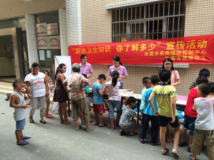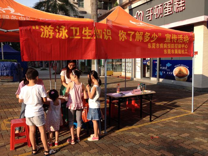 为了让居民了解游泳池水卫生知识,我中心公共卫生监测所于8月在东城东泰社区、南城雅园社区开展了2场“游泳卫生知识,你了解多少”为主题的宣传活动。活动主要以宣传游泳池水卫生知识为主,游戏体验为辅的形式,通过“跳绳我最厉害”、“拼图我最行”、“有奖问答”等体验游戏方式吸引了大批居民,活动得到居民的大力支持,现场充满了欢声笑语。现场工作人员通过发放宣传单张、答疑和游戏等方式,给社区居民带来一场在游戏欢笑中学习泳池水卫生知识的宣传活动,提高居民对游泳池水卫生的认识,同时,工作人员提醒居民在游泳时要注意做好个人卫生防护,养成良好习惯。