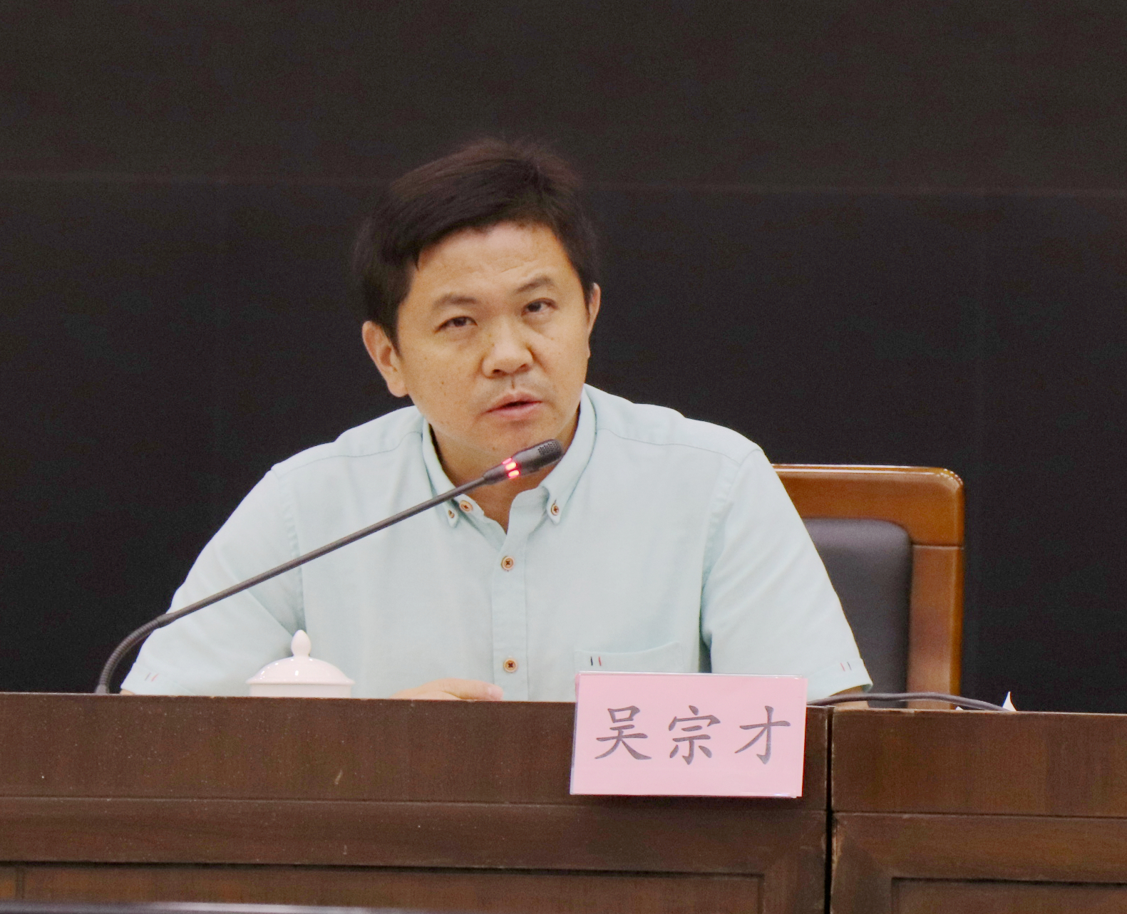图3 东莞市卫生计生局宣传科科长吴宗才主持本次会议