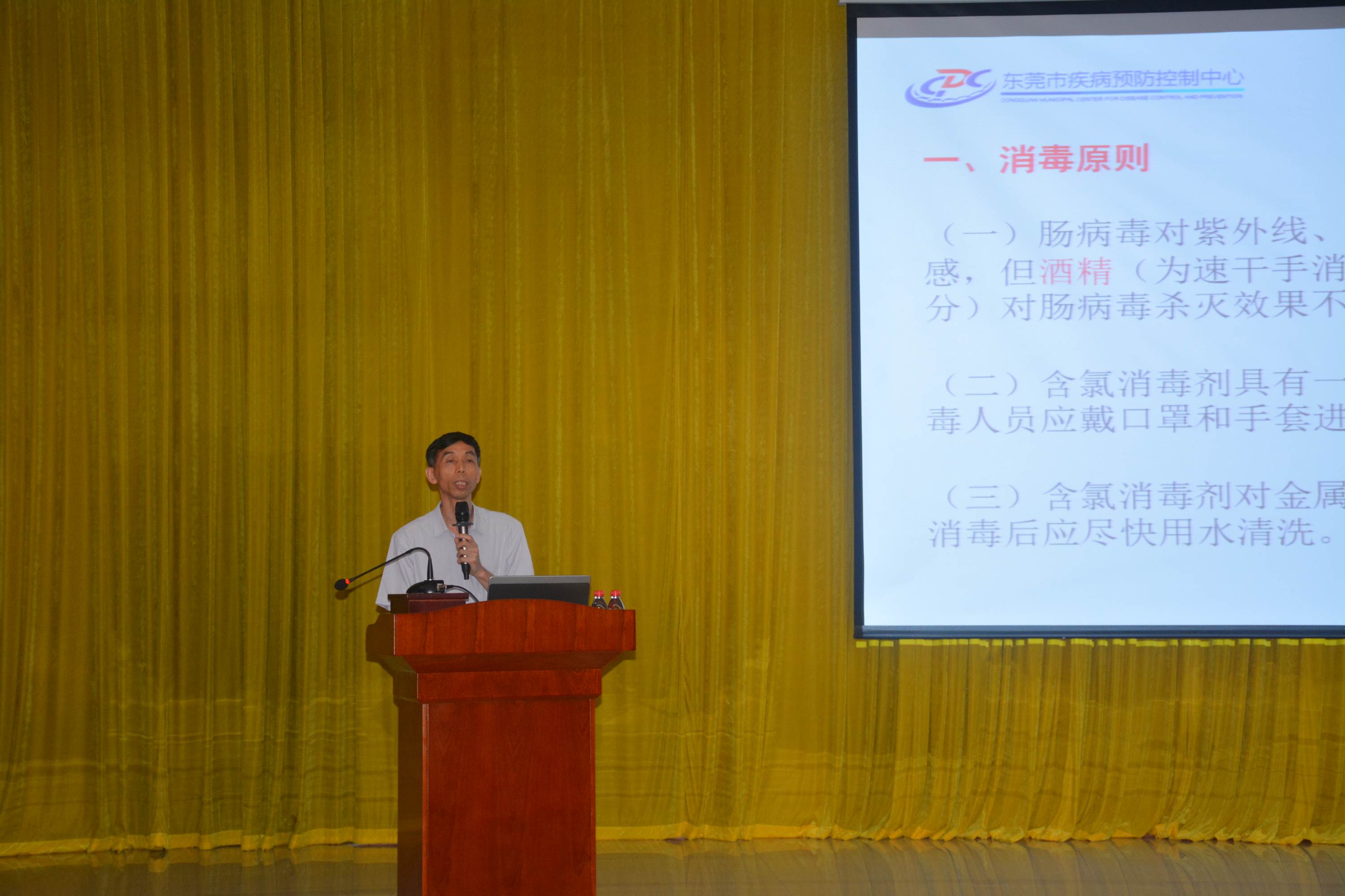 随后,我中心传防所曾耀明主管医师介绍了手足口病的基本知识,总结分析了我市手足口病疫情特点,详细讲解了托幼机构防控措施及疫苗接种要点,并对我市今年的防控工作提出了具体要求。我中心消杀所所长冯志阶主任医师介绍了常用消毒剂的使用方法,重点讲解了托幼机构各种环境和物品的消毒要点。