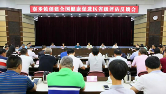 为进一步加强和推进我市健康促进工作,推进健康东莞建设,打造卫生强市,8月13日至15日,由广东省卫生和计划生育委员会副主任陈义平为组长,广东省卫生和计划生育委员会宣传处处长廖俐珍和广东省健康教育中心主任汤捷为副组长的全国健康促进县(区)试点项目广东省评估组一行9人,对东莞市寮步镇第三批全国健康促进县(区)试点工作进行了省级评估,东莞市人民政府副市长俞丽君和东莞市卫生和计划生育局局长叶向阳等市领导与广东省评估组一行进行座谈。