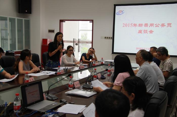 7月27日,市疾控中心召开了2015年新录用公务员座谈会暨机构运行管理体系岗前培训,中心领导班子成员、中层领导干部和8名新录用公务员参加了会议。