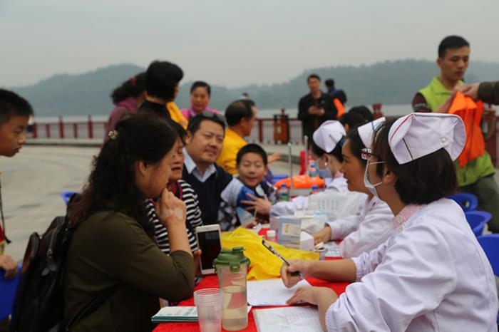 图2 医务队伍为现场群众提供测量血糖及血压服务