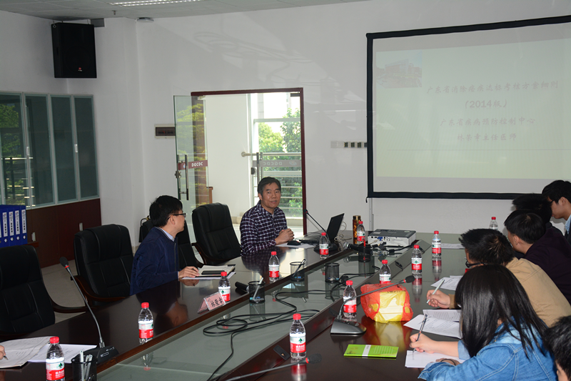 本次培训班邀请到了广东省疾控中心林荣幸主任技师授课。林荣幸主任技师深入讲解了《广东省消除疟疾达标考核方案细则(2014版)》,结合消除疟疾的考核原则和考核指标,逐一梳理了申请、审核、考核、批复等考核程序,重点分析了组织机构保障、工作资料、理论知识考核、镜检人员考核、现场走访、最后一例病例资料及主动病例侦查资料等的考核要求,并针对我市疟疾防控现状提出了针对性的工作意见和建议。