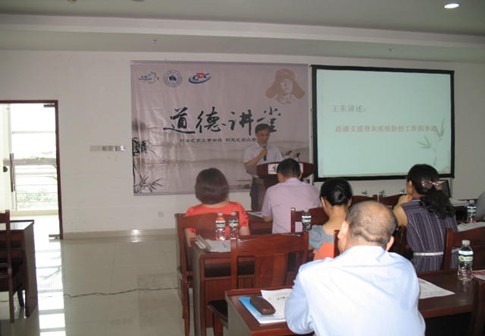 为深入贯彻落实党的十七届六中全会和市第十三次党代会精神,认真实施《公民道德建设实施纲要》,弘扬“厚于德、诚于信、敏于行”新时期广东精神,东莞市疾病预防控制中心公卫党支部于2012年8月2日下午举行了一次道德讲堂。