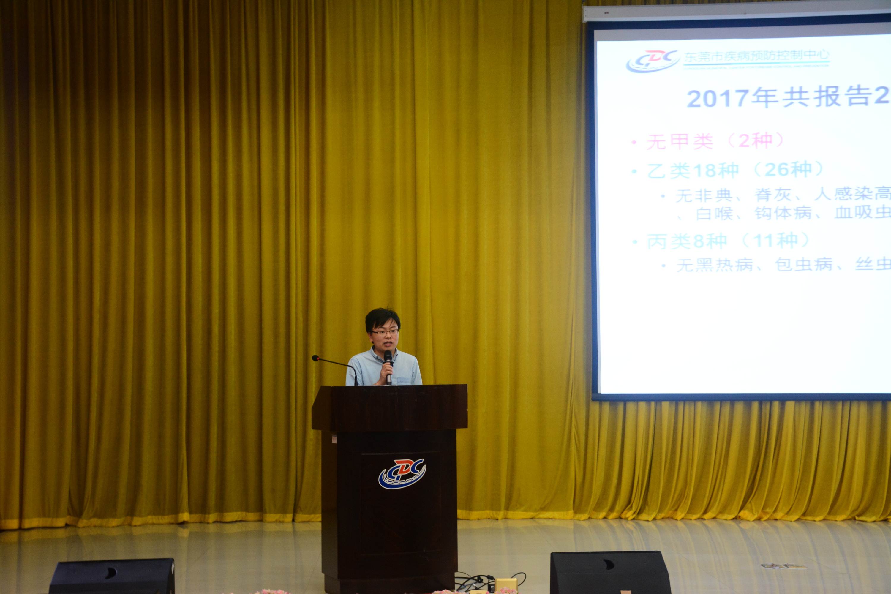 随后,市疾控中心传防所副所长张泽武总结分析了我市2017年传染病报告管理情况和质量,并对2018年传染病报告管理工作提出了具体要求。市疾控中心传防所谢伟群主管医师详细解读了《东莞市法定传染病报告质量和管理现状调查方案 (2017年版)》并对工作中的常见问题进行了分析。最后,市疾控中心传防所吴德元主管医师讲解了R语言在法定传染病报告质量调查中的应用,用于提高传染病漏报自查的效率。