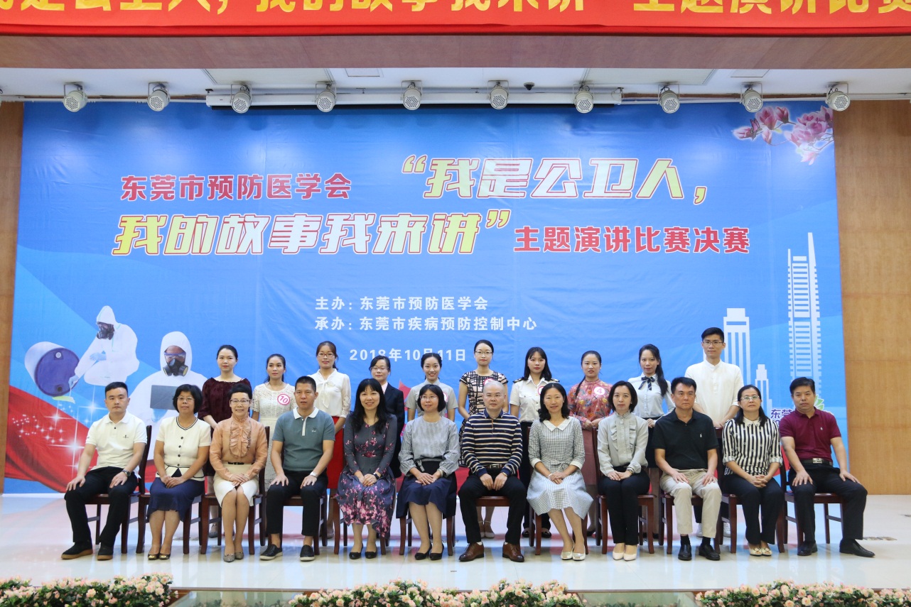 为进一步展示我市预防医学工作者的形象与风采,体现他们敬业、奉献精神,同时提高我市预防医学工作者演讲技巧和宣讲能力,从而有效针对社会公众开展知识宣传,由东莞市预防医学会主办,东莞市疾病预防控制中心承办的“我是公卫人,我的故事我来讲”主题演讲比赛活动决赛于2018年10月11日在东莞市疾病预防控制中心举行。出席本次决赛的主要领导及评委嘉宾有东莞市卫生和计划生育局党组成员、副局长尹露萍,东莞市预防医学会理事长张巧利,东莞市预防医学会副理事长王宇平等。100多名来自全市79个预防医学会会员单位的观众代表约观摩了本次决赛活动。